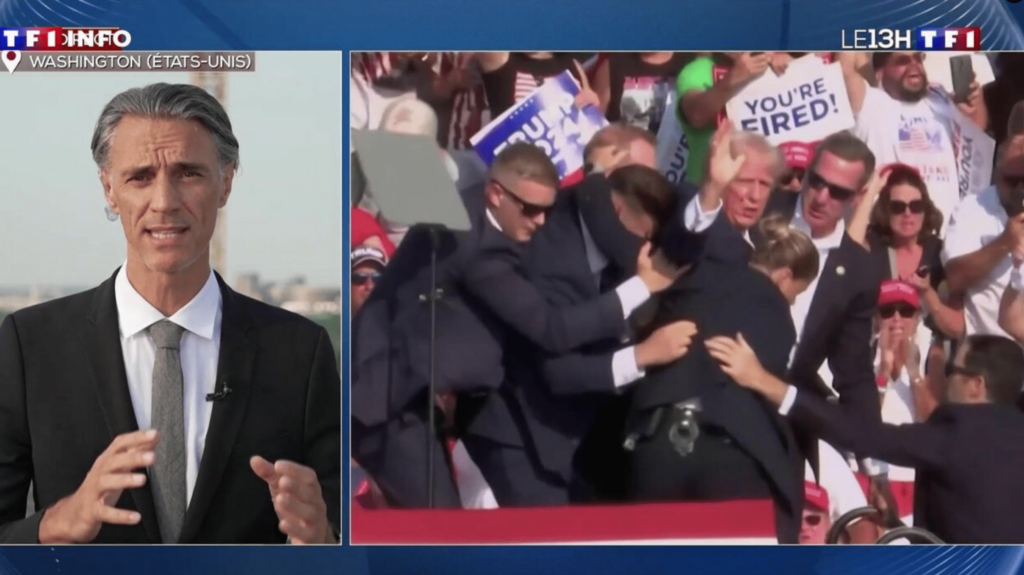Un témoin de la fusillade ayant blessé Donald Trump samedi a raconté à la BBC avoir observé le tireur, armé, grimper sur le toit avant de commencer à tirer. Il a également signalé la présence du tireur aux forces de l’ordre responsables de la sécurité du meeting, mais affirme que ces dernières n’ont pas réagi. « Nous avons vu un gars grimper sur le toit, à côté de nous, à une trentaine de mètres. Il avait un fusil, nous pouvions clairement le voir. On le montrait du doigt. La police était juste en bas et ils faisaient comme si de rien n’était. Je me suis dit : “Mais pourquoi Trump est-il encore en train de parler, pourquoi est-il encore sur l’estrade ?” Je suis resté deux ou trois minutes à montrer le gars. Le Secret Service nous regardait depuis le toit de la grange, puis (…) cinq coups de feu ont retenti, » a-t-il expliqué.