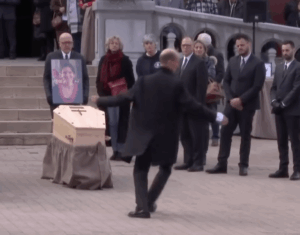 Deux semaines après le drame, les obsèques d’Agnès Lassalle ont lieu à l’église Sainte-Eugénie de Biarritz. Son compagnon, Stéphane Voirin, danse seul devant le cercueil. L’image, filmée et partagée massivement, devient le symbole d’un deuil hors norme, mêlant chagrin intime et grâce publique. Elle a ému bien au-delà des frontières françaises. Ce mardi matin à Pau, Stéphane Voirin était au premier rang de la salle d’audience. Accueilli par une nuée de journalistes avant d’entrer, il portait un t-shirt noir imprimé d’une photo du couple en train de danser ensemble. Il l’a changé à la mi-journée pour un autre cliché d’Agnès.